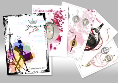 Shooting et retouches des collections Réalisation de différents supports de communication: Catalogues, book de travail, notice, PLV, brochures, annonces presse stand - bannières - habillage vitrines
